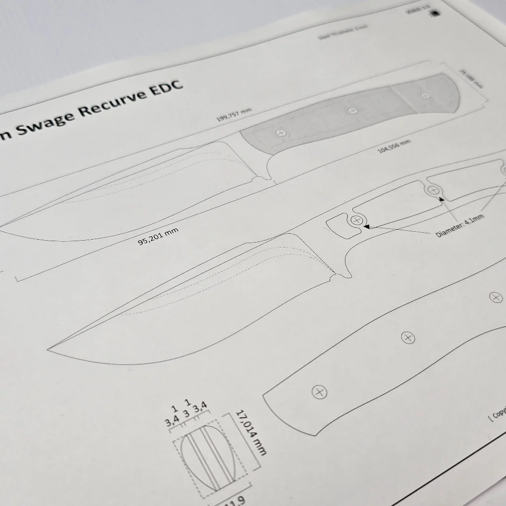 Introducing the Guardian Swage Recurve EDC Knife Design, a meticulously crafted blueprint by ABS Master Smith Neels van den Berg, tailored for knifemakers seeking to create a versatile tool for outdoor enthusiasts.